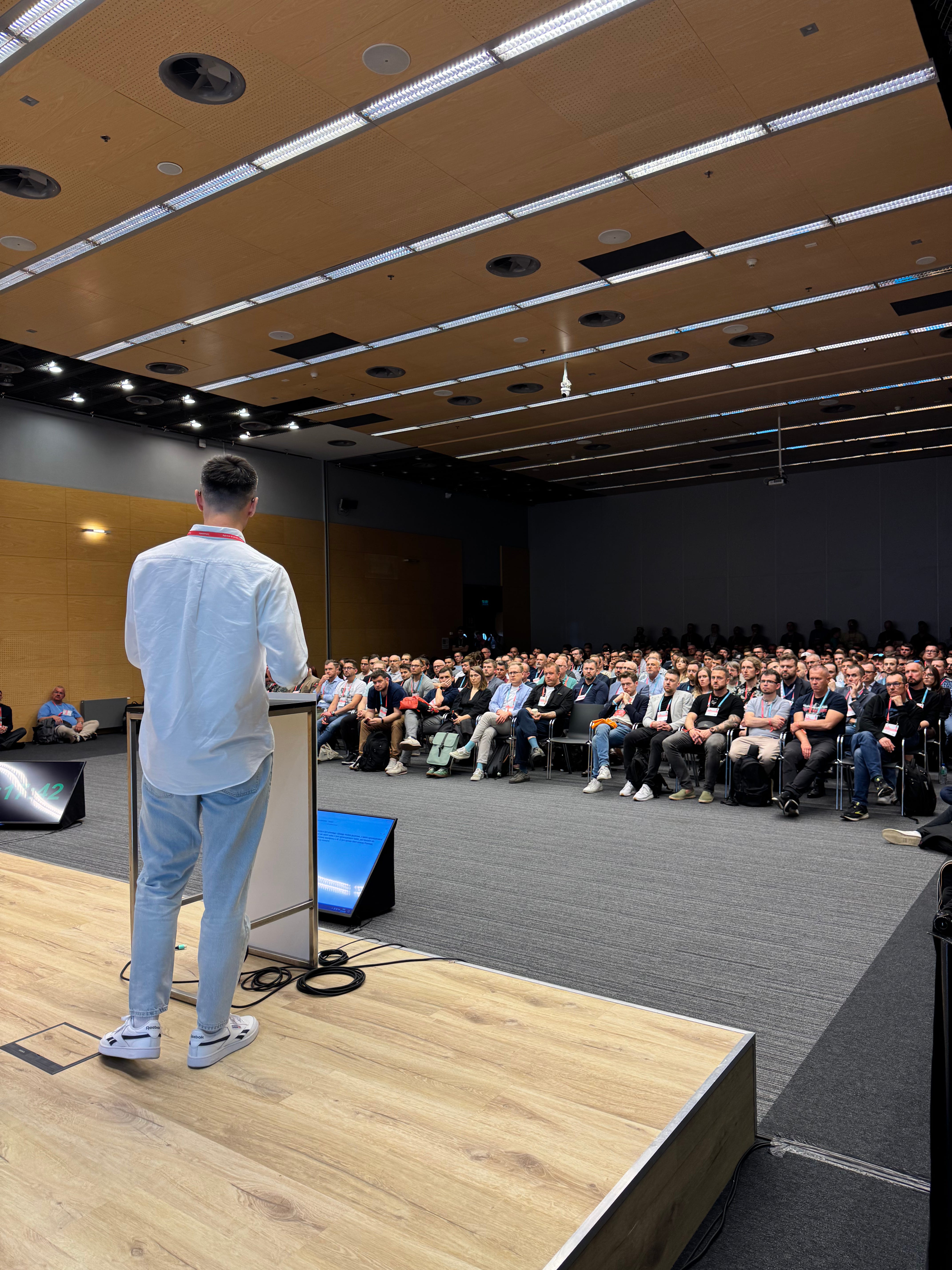 Nasza prelekcja "Nadchodzi koniec programowania (jakie znamy...)" wypełniła po brzegi salę "Dev Architecture" - dziękujemy za liczne przybycie. Doszły nas słuchy, że było ciekawe i merytorycznie, co znajduje potwierdzenie w ocenie 4.75/5 jaką otrzymaliśmy od publiczności.