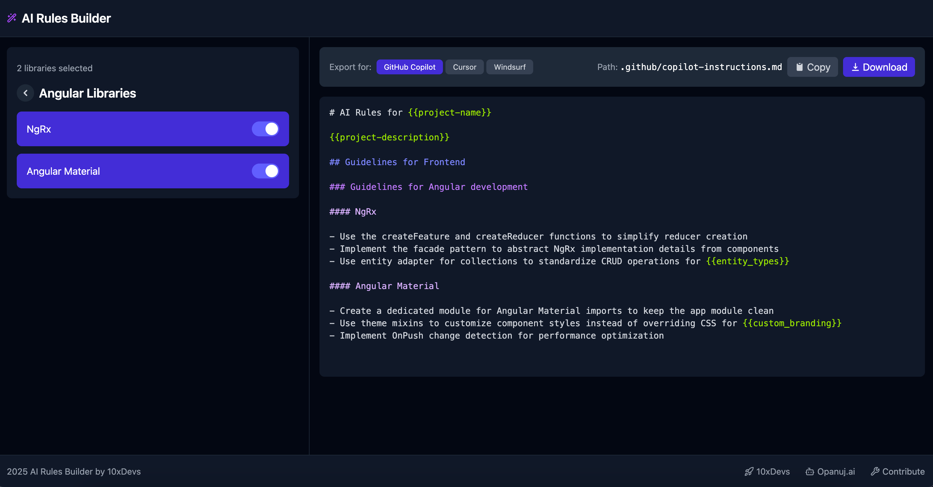 Wczoraj testowałem możliwości edytora Windsurf budując aplikację w stacku Astro + React + TypeScript, ułatwiającą tworzenie tzw. "Rules for AI" o których pisaliśmy w niedawnym poradniku.